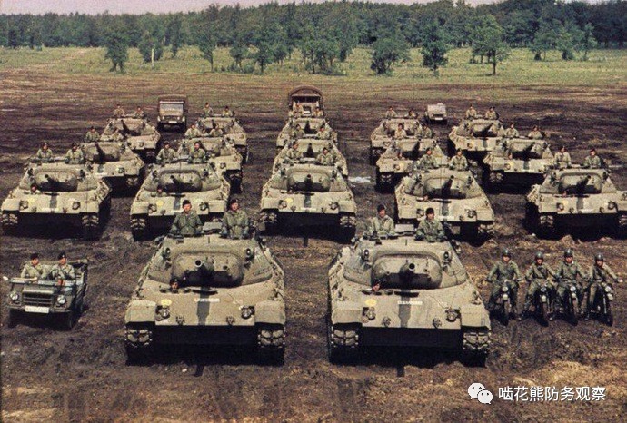 70年代典型的德军坦克连,主力装备是豹1主战坦克。 北约各国的军事装备也到了转型期,大批旧式武器临近淘汰,而新兴装备还需要时间换装;英国及西欧左翼政党的上台也大幅度削减了相关国家的军事力量,特别是英国海陆空三军建设严重受阻,加上欧洲各国对于核武器的看法发生改变,使得北约各国在核武器的使用上大受限制。